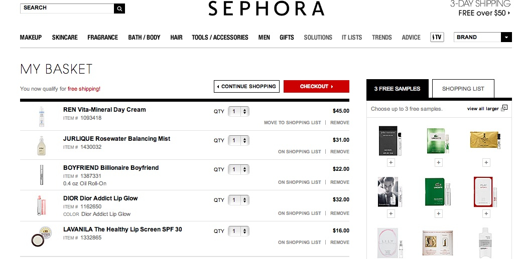 In my last online shopping trip I purchased the lip glow, which you can see on the left below. But on a quick run to the store last week to return the Billionaire Boyfriend roll-on for the .5 oz spray bottle, I bought it in Silhouette, the color Brittany had been wearing. Silhouette is a beautiful rosy pink with some peach undertones.